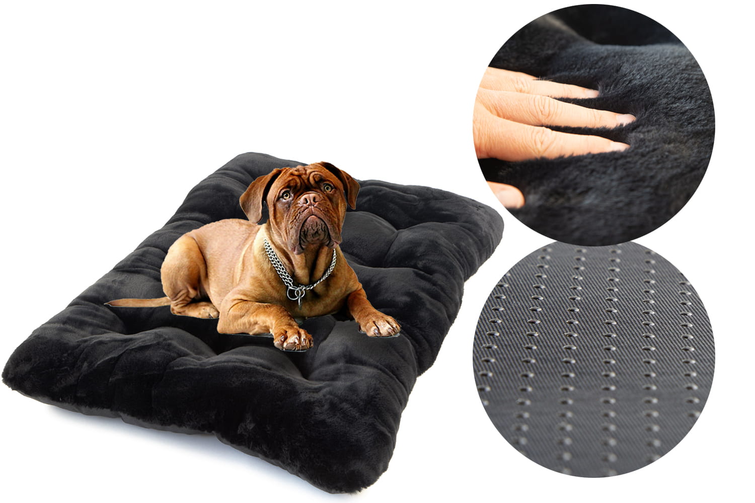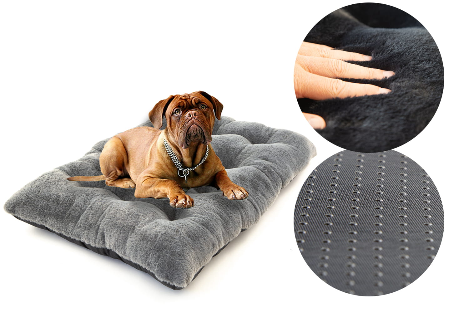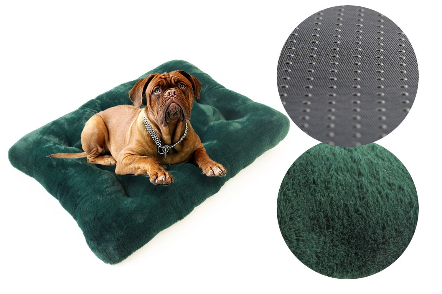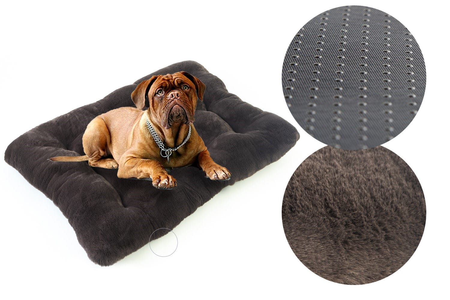 W naszych legowiskach na spodzie stosujemy Antyslip który posiada gumowe kulki zapobiegające przemieszczaniu się legowiska nawet na bardzo śliskich powierzchniach. Ponadto jest to materiał bardziej wytrzymały od zwykle stosowanego Wigofilu.