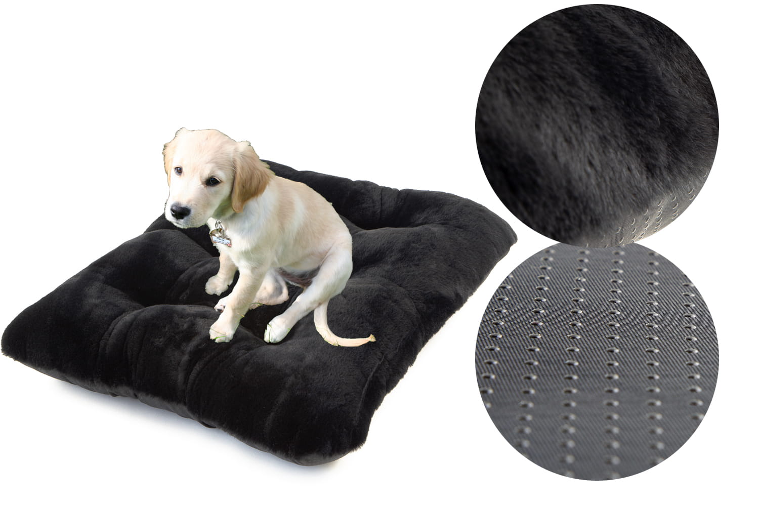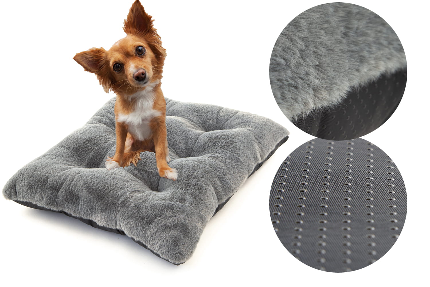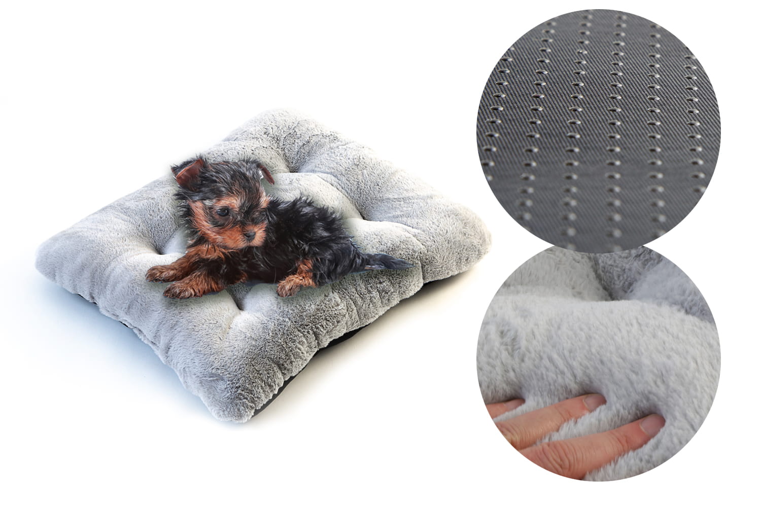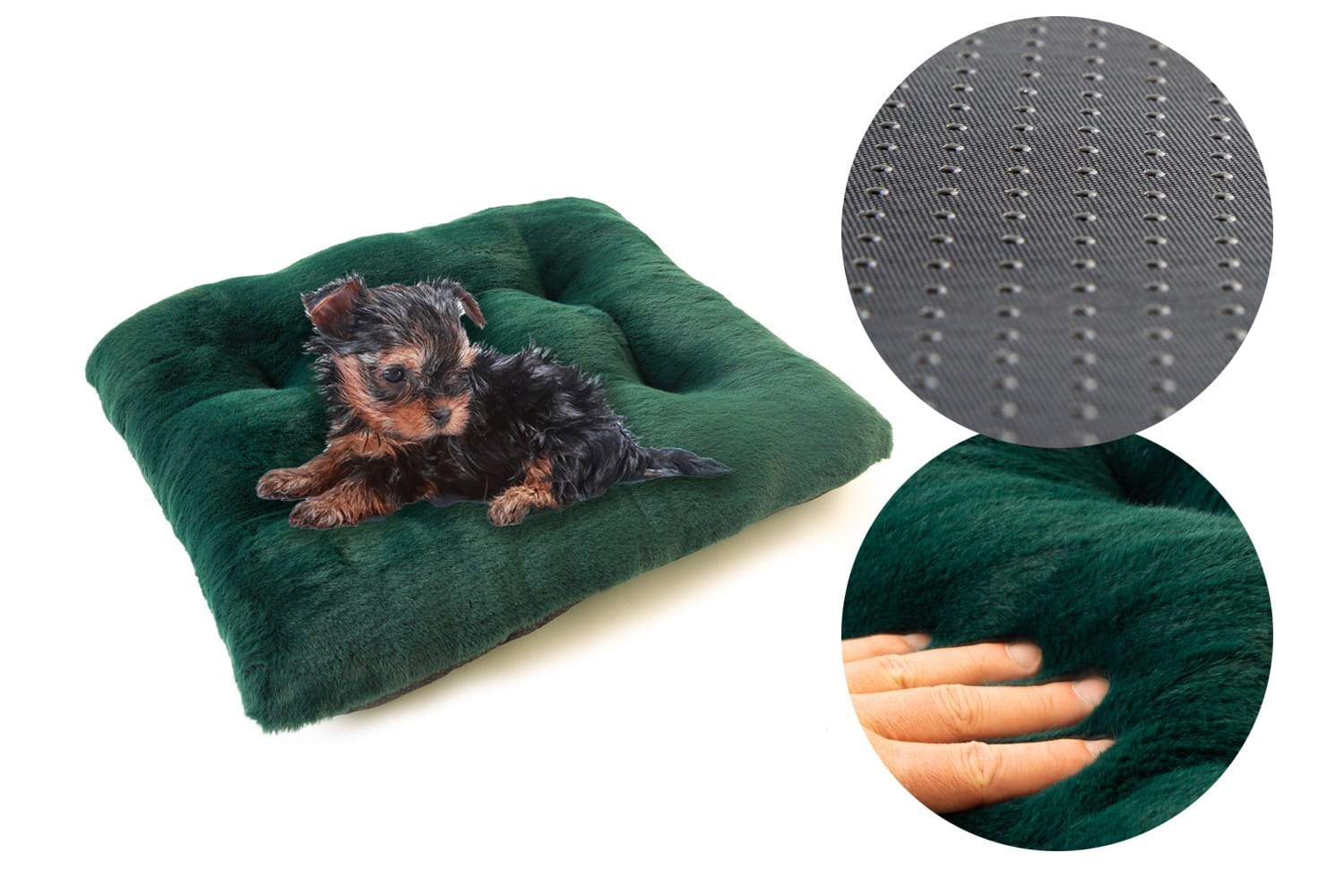 W naszych legowiskach na spodzie stosujemy Antyslip który posiada gumowe kulki zapobiegające przemieszczaniu się legowiska nawet na bardzo śliskich powierzchniach. Ponadto jest to materiał bardziej wytrzymały od zwykle stosowanego Wigofilu.