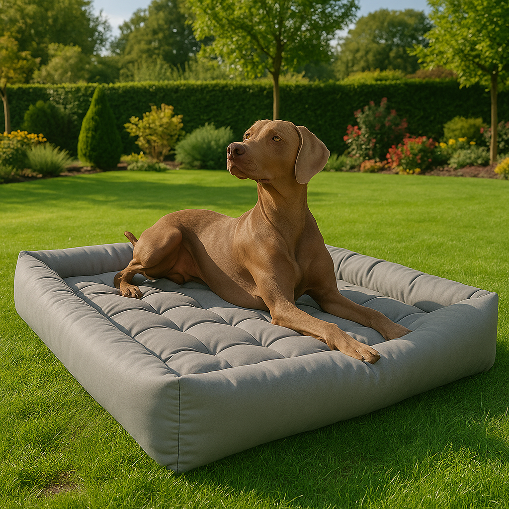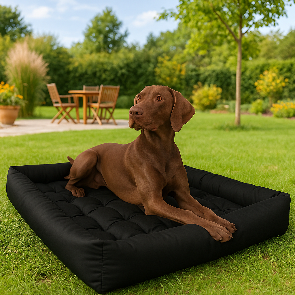 - Środek i boki legowiska zostały w całości wykonane z materiału wodoodpornego typu pasadena, a nie łączone z cienkim wigofilem, co daje większą estetykę i funkcjonalność produktu.