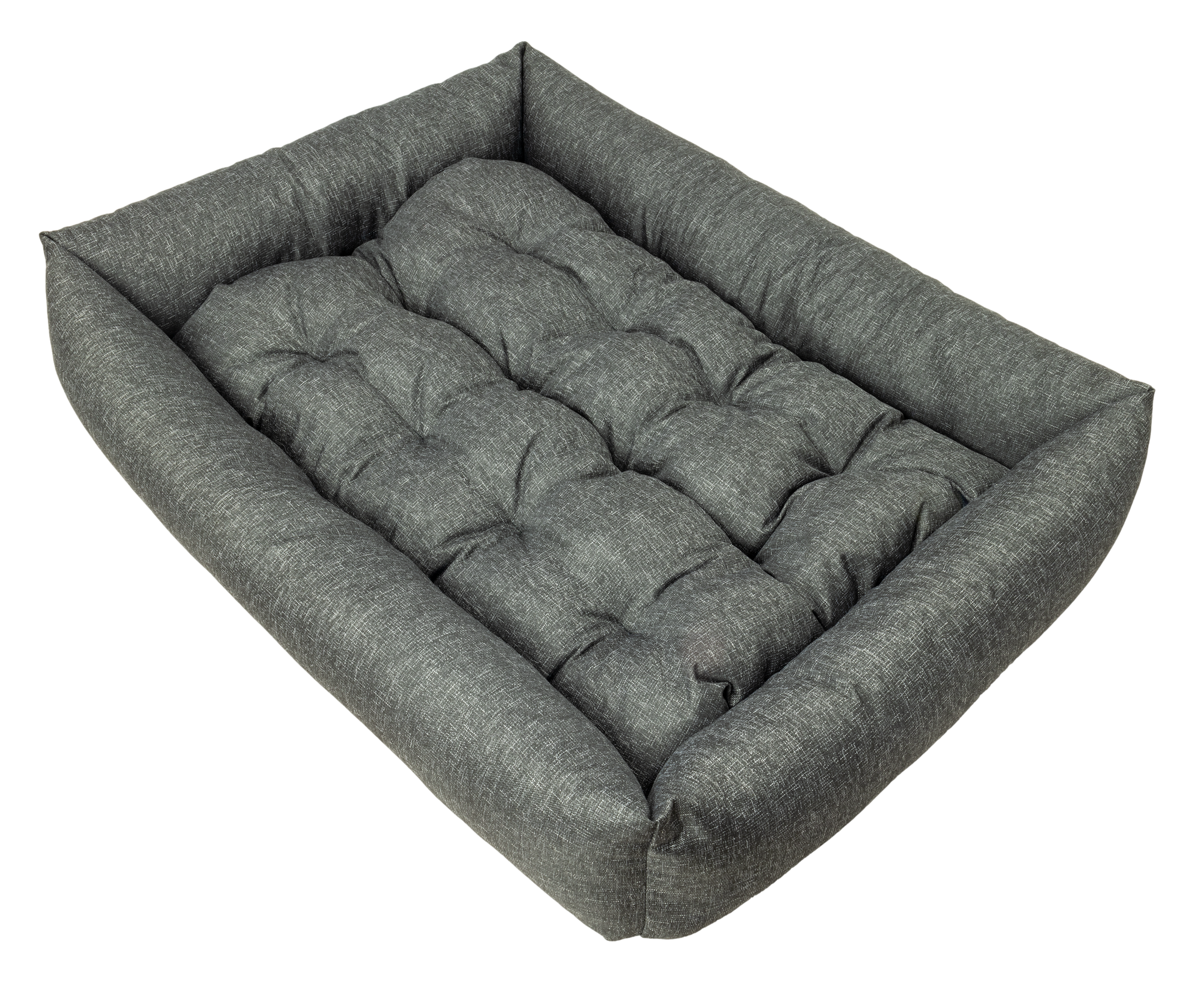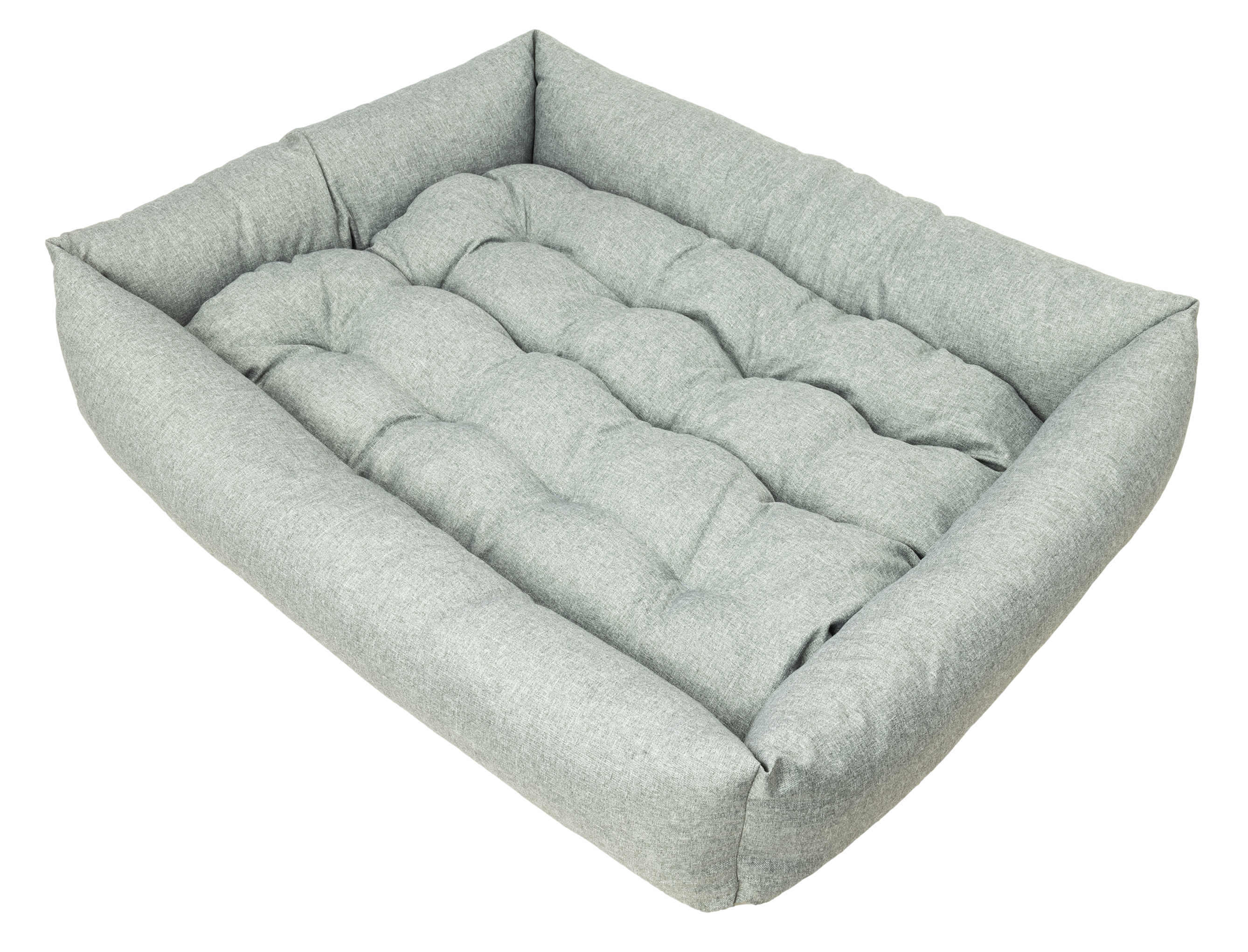 - Środek i boki legowiska zostały w całości wykonane z materiału wodoodpornego typu pasadena, a nie łączone z cienkim wigofilem, co daje większą estetykę i funkcjonalność produktu.