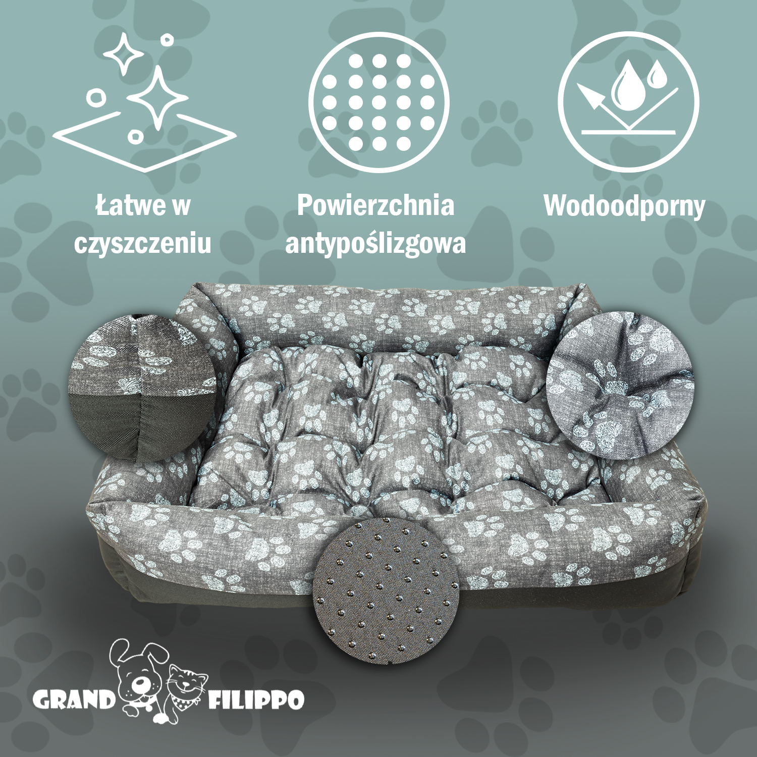 - Legowisko wykonane jest z powlekanej tkaniny, która jest nieprzemakalna, łatwo zmywalna, i bardzo wytrzymała.