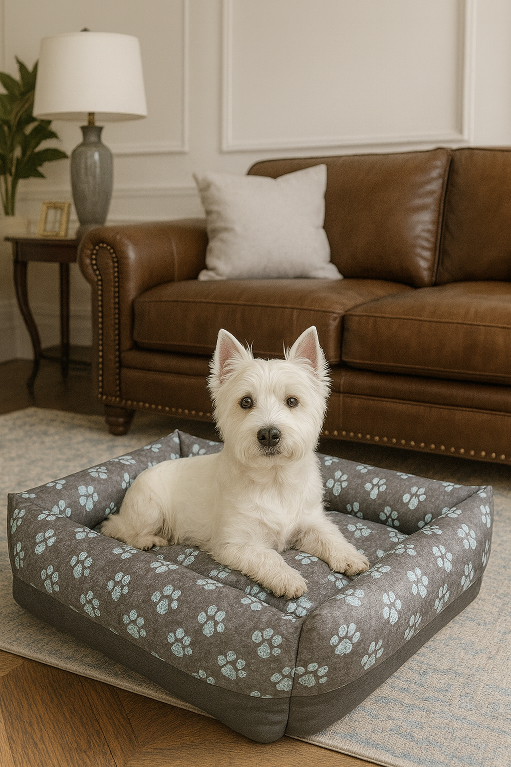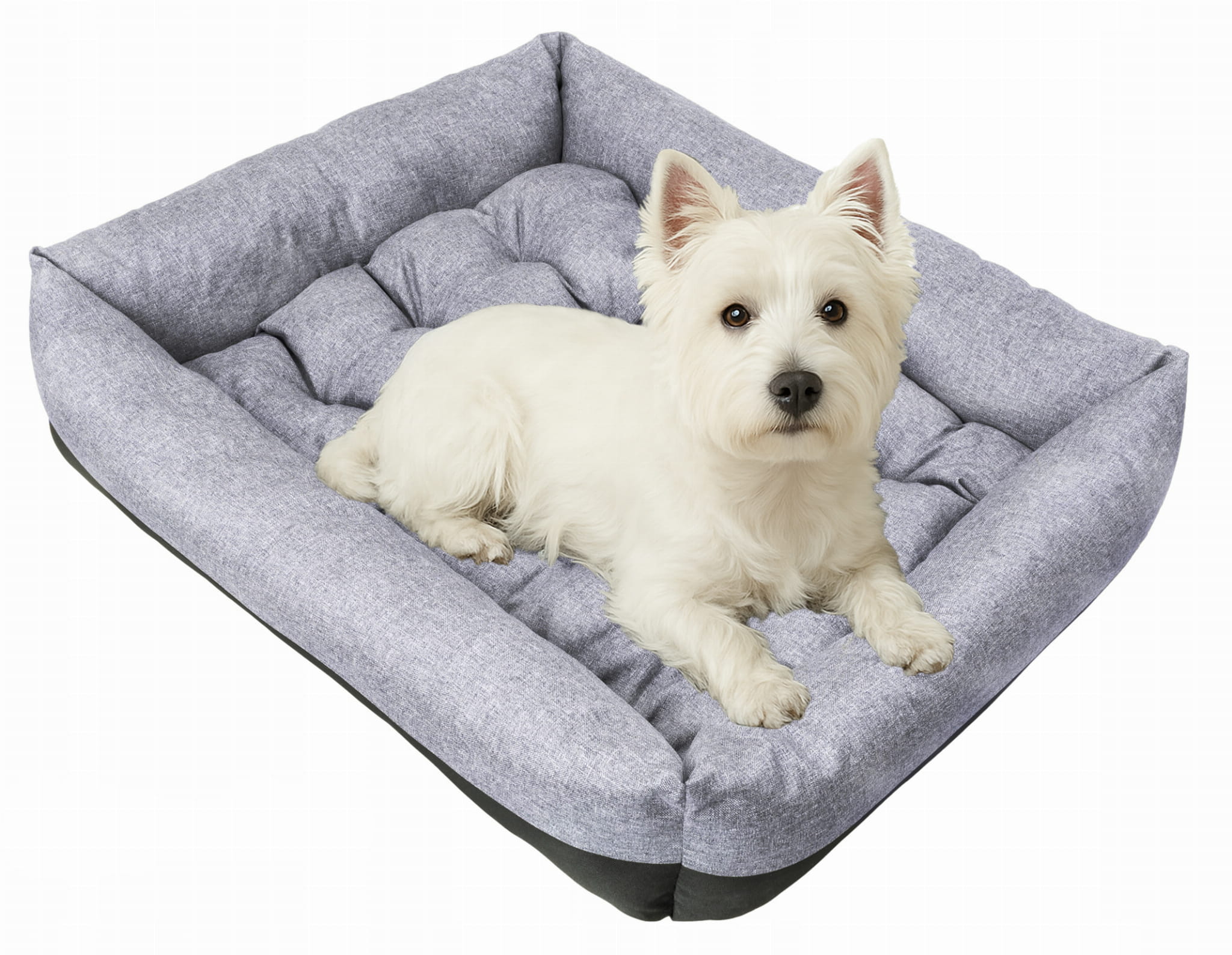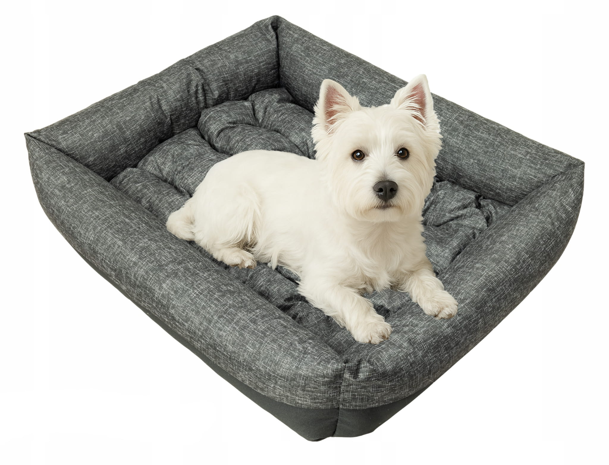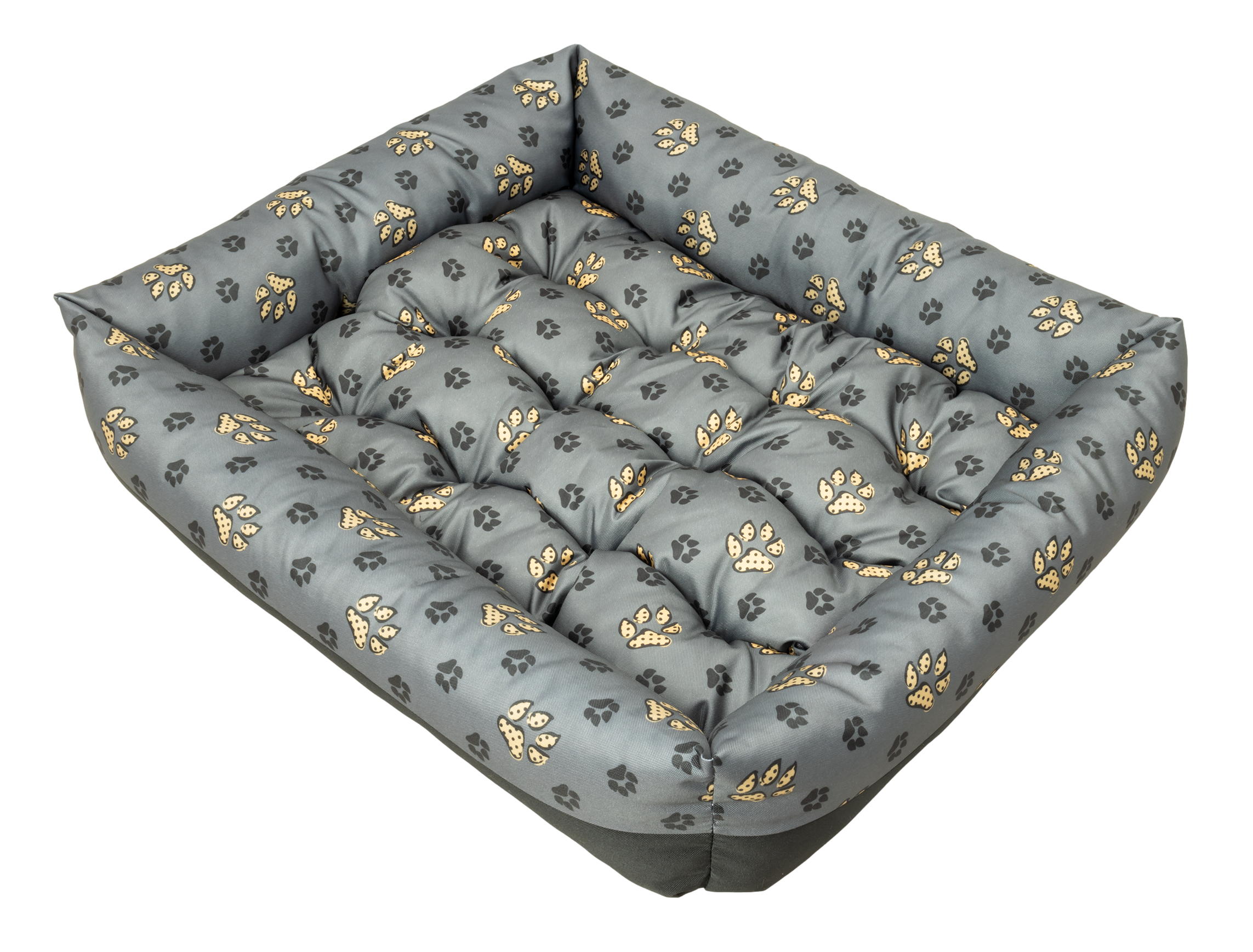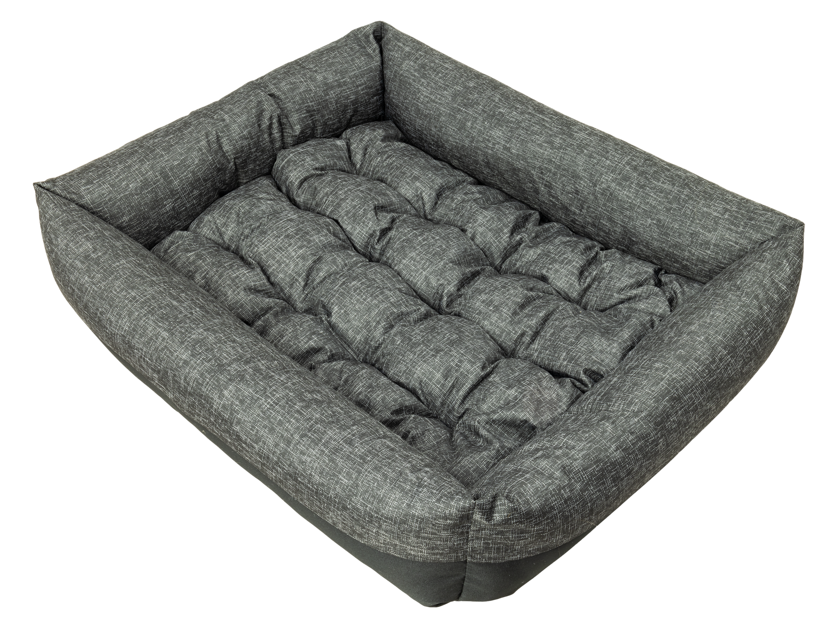 - Środek i boki legowiska zostały w całości wykonane z materiału wodoodpornego typu pasadena, a nie łączone z cienkim wigofilem, co daje większą estetykę i funkcjonalność produktu.
