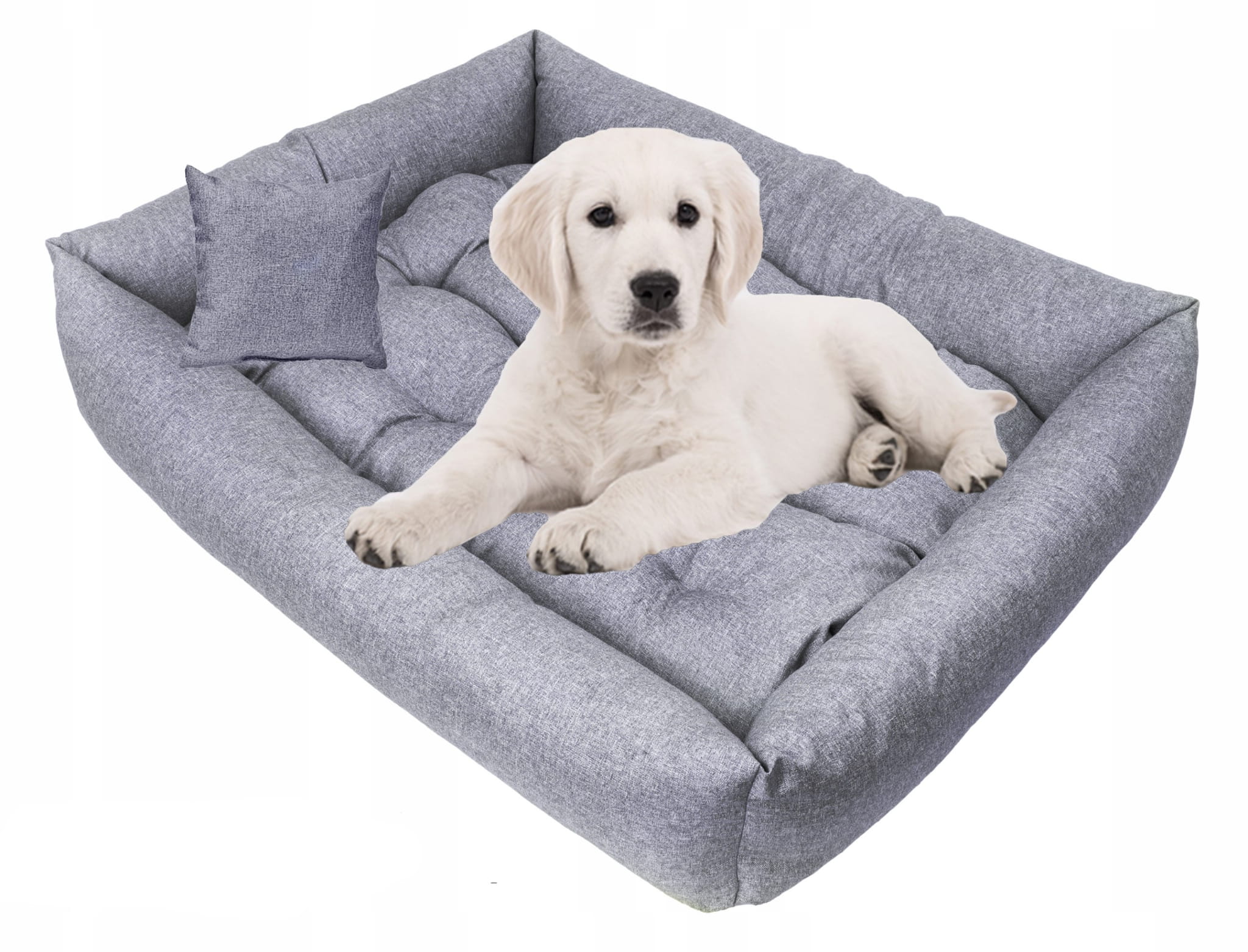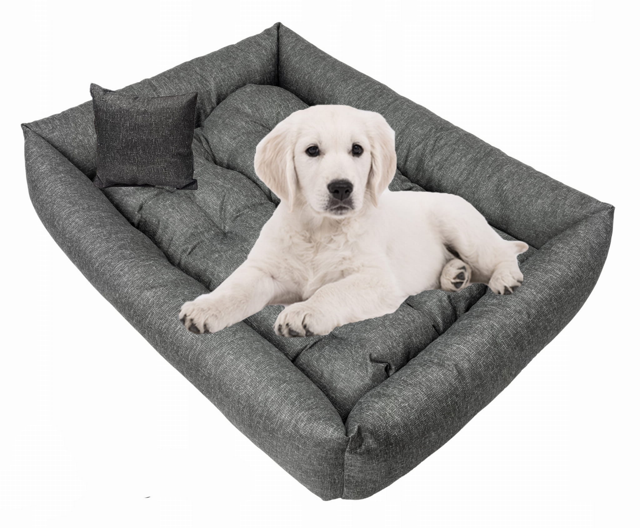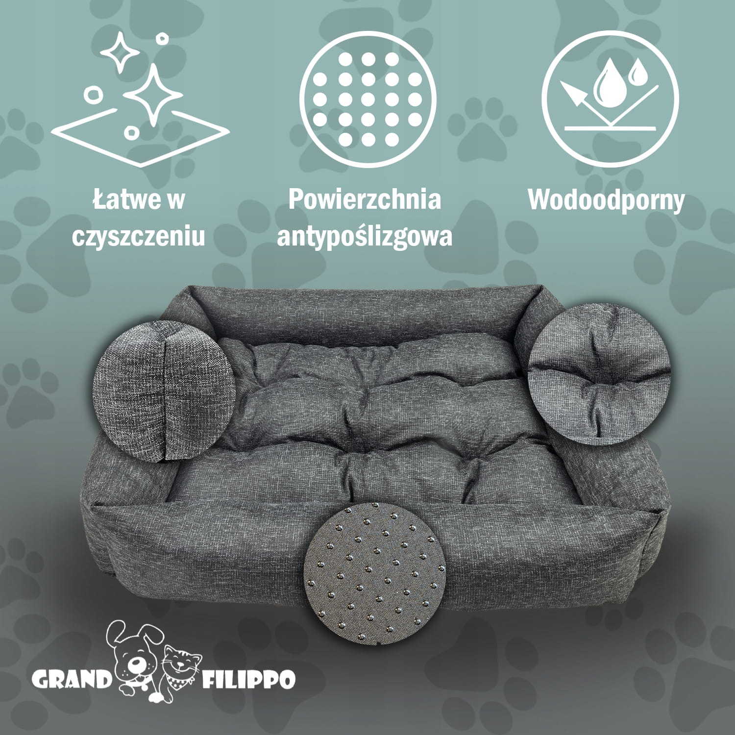 - Środek i boki legowiska zostały w całości wykonane z materiału wodoodpornego typu pasadena, a nie łączone z cienkim wigofilem, co daje większą estetykę i funkcjonalność produktu