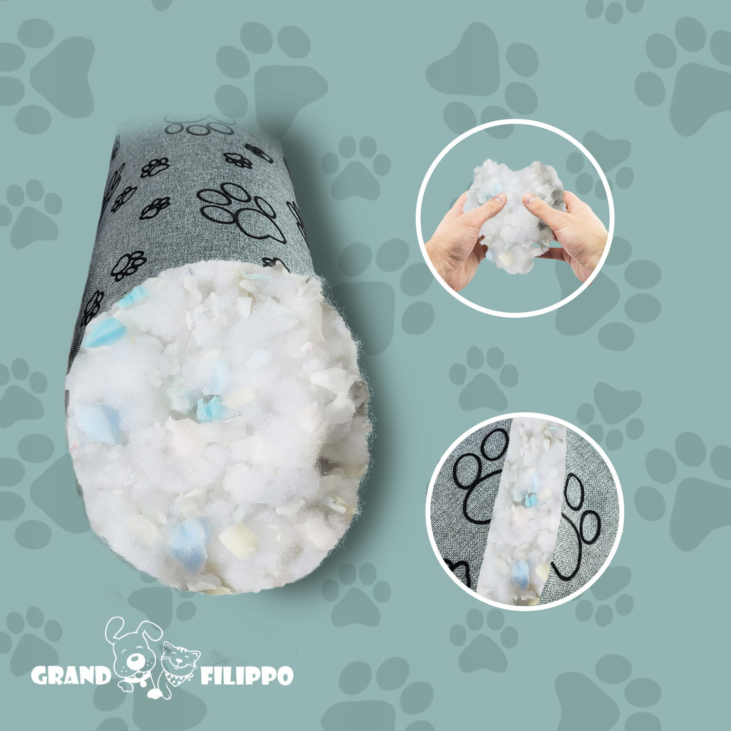 - Legowisko wykonane jest z powlekanej tkaniny, która jest nieprzemakalna, łatwo zmywalna i bardzo wytrzymała.