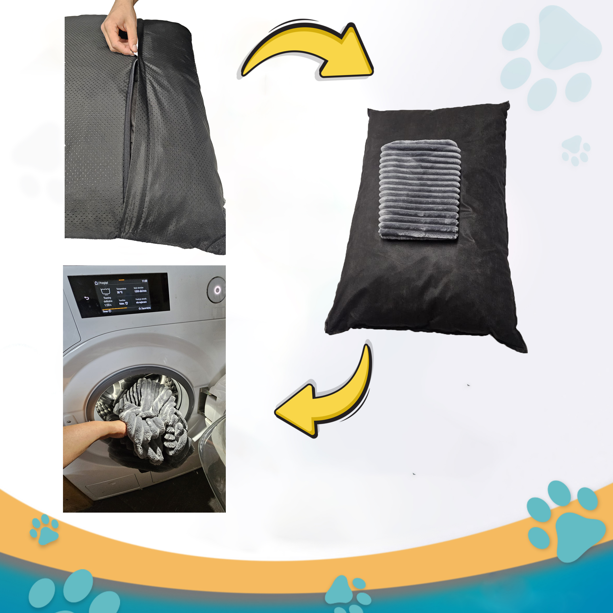 Dzięki technologii Easy Clean, zabrudzenia jak błoto czy sierść można łatwo usunąć wilgotną ściereczką – bez potrzeby częstego prania. A jeśli zajdzie taka potrzeba – pokrowiec z zamkiem pozwala na szybkie wypranie samej poszewki.