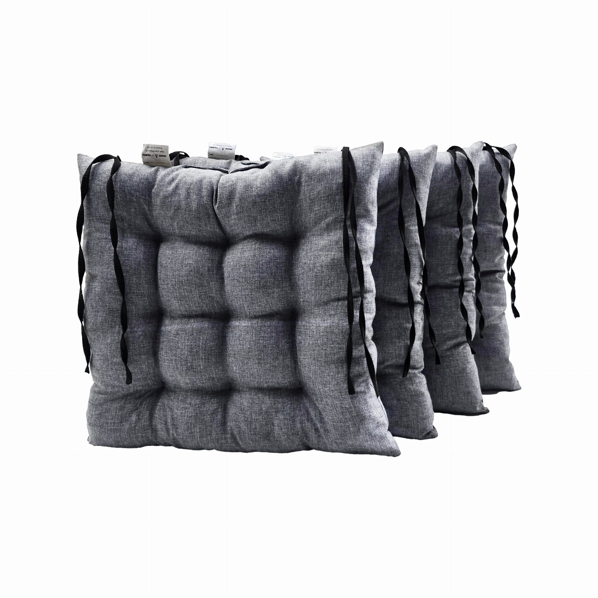 Pikowana Dwustronna Poduszka na Krzesło Fotel i Taboret 40x40cm Zestaw 4szt Szary Len