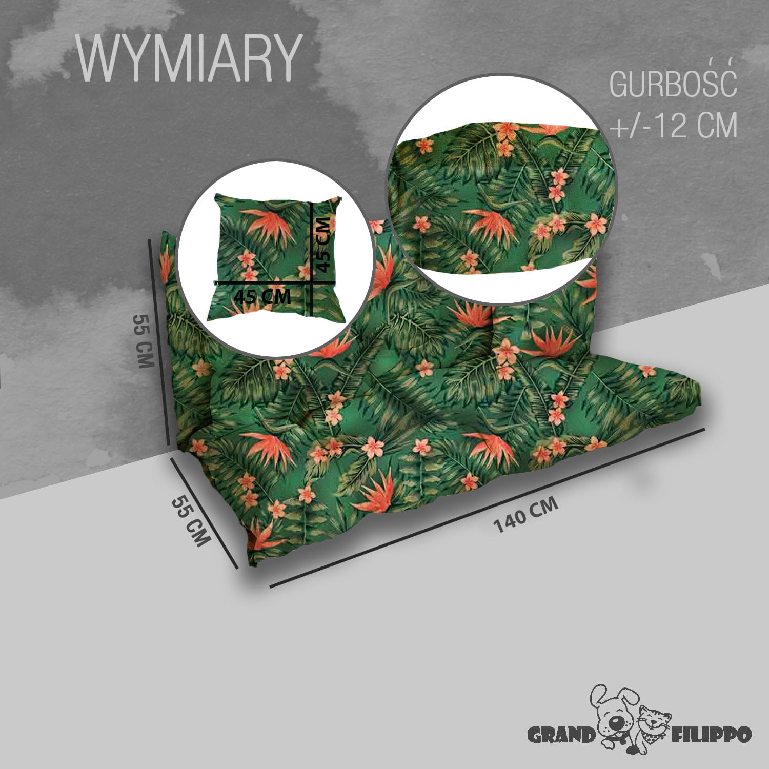 - 100x55x55 cm wymiar całkowity poduszki