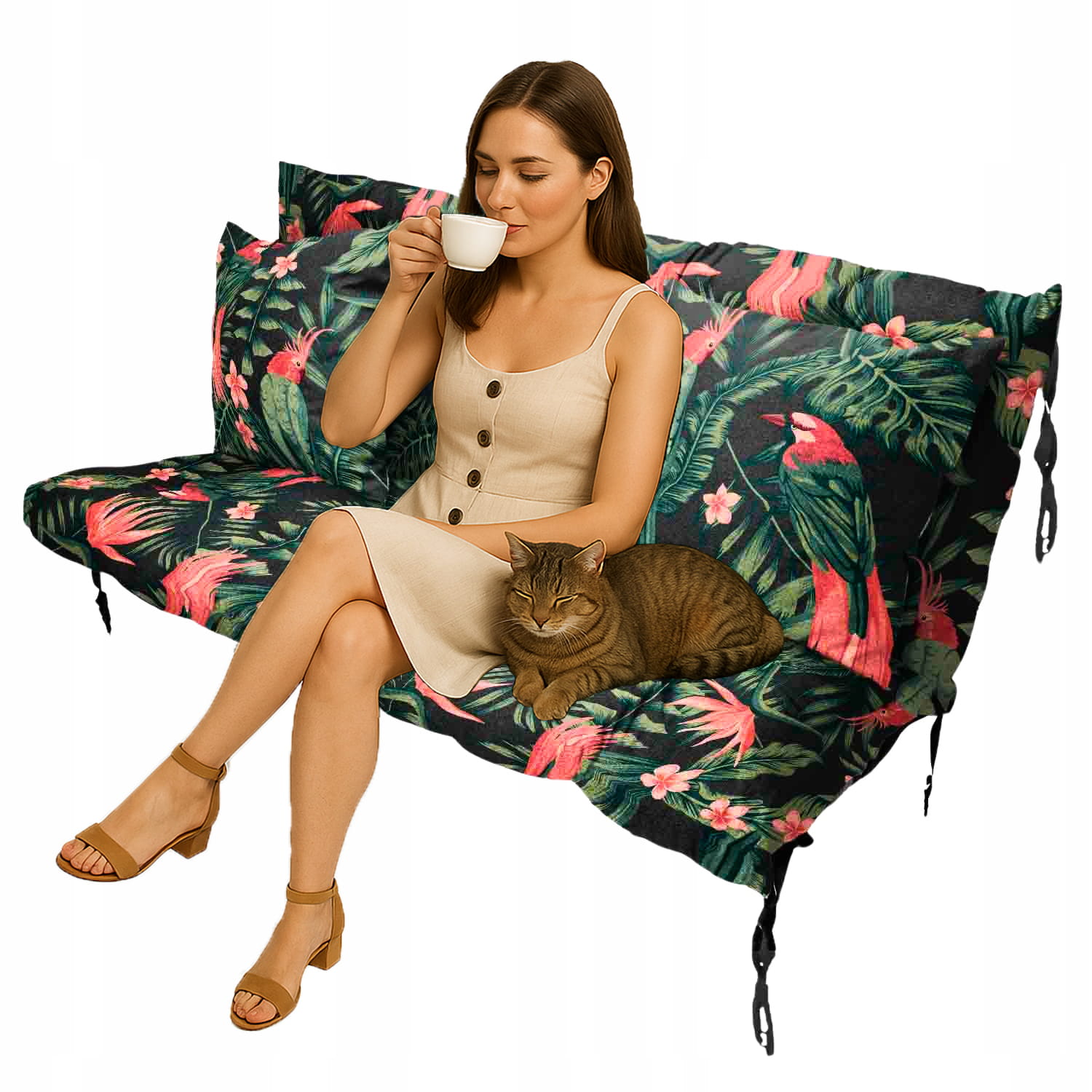 Wodoodporna poduszka ogrodowa na huśtawkę 140x55x55cm Poliester z nadrukiem liści oraz papug z Anti-Slipem