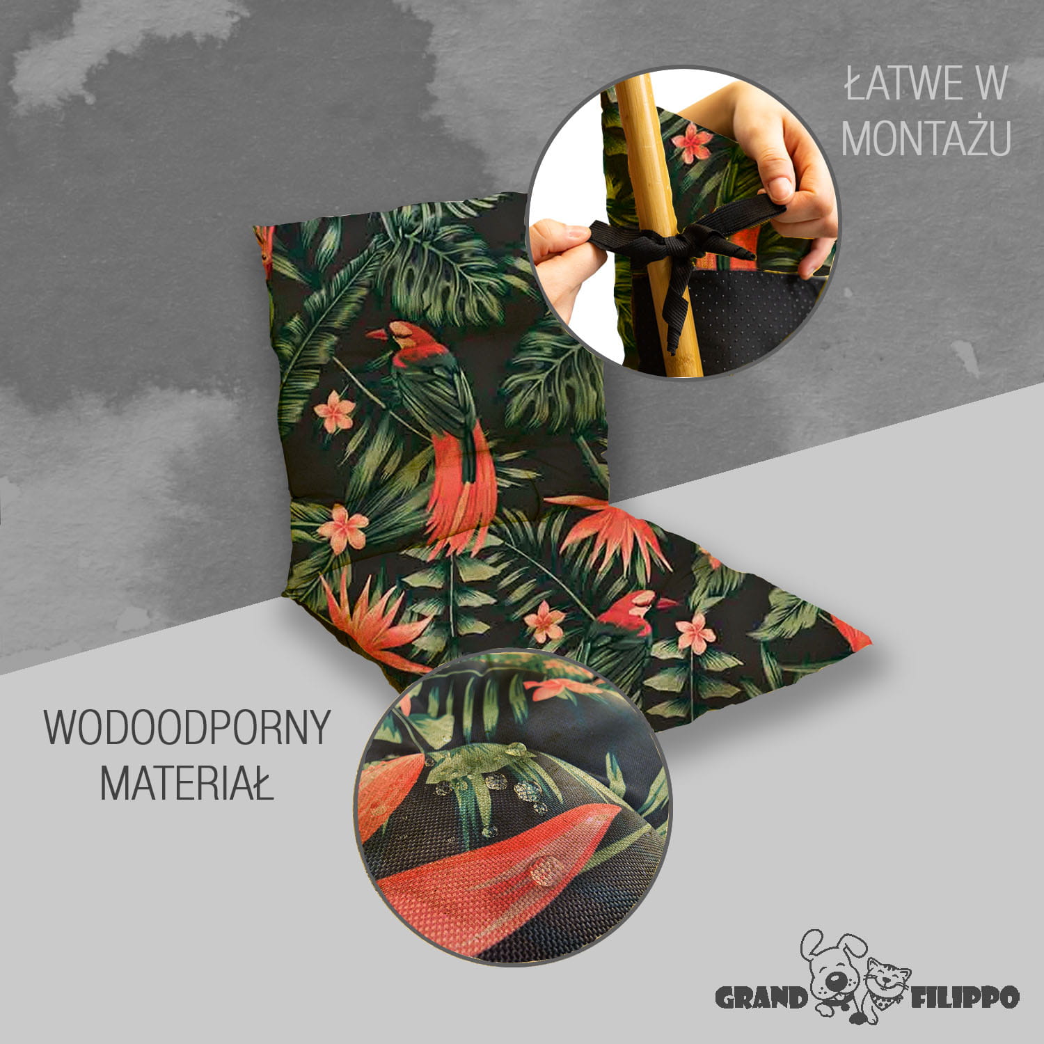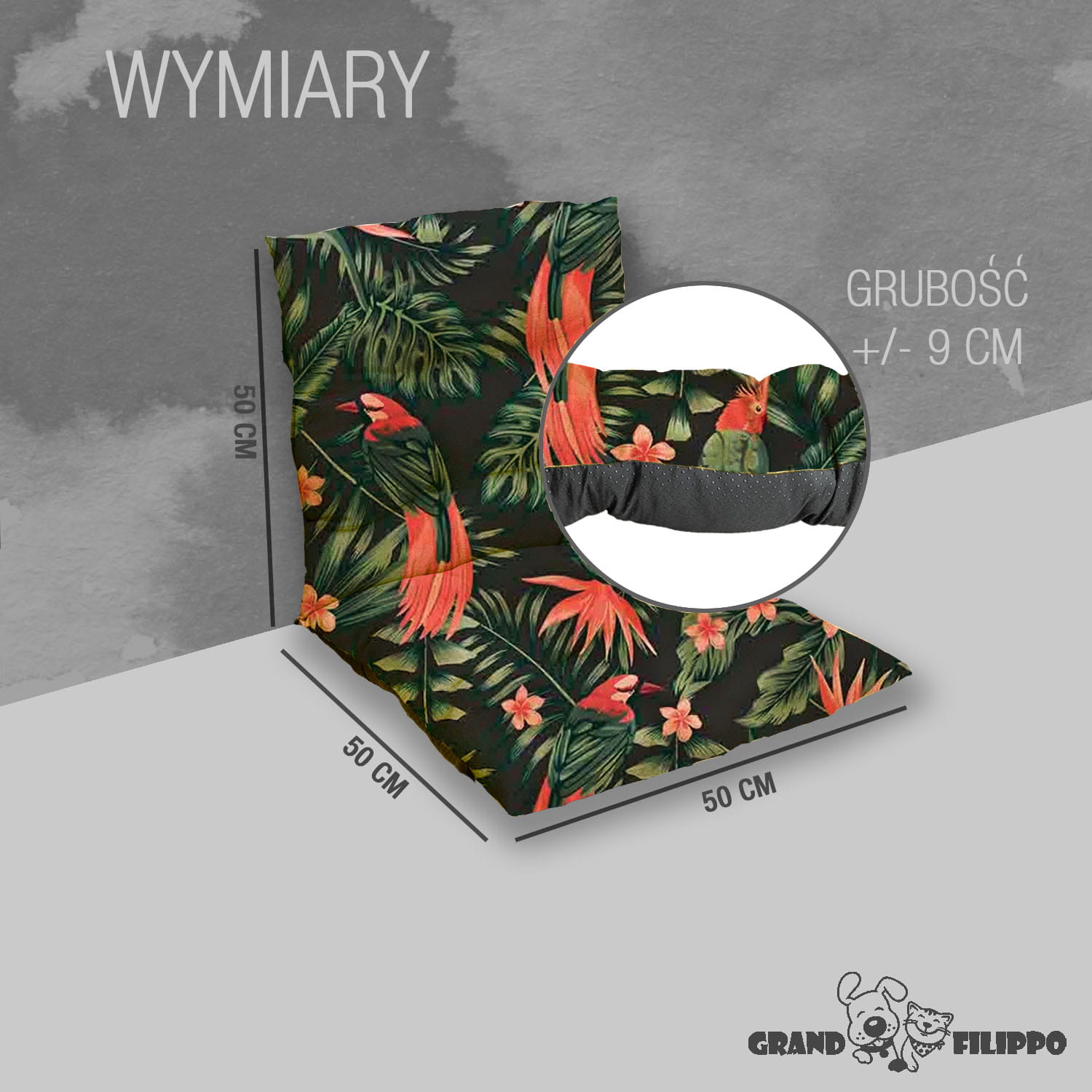 Poduszka na krzesło ogrodowe 50x50x50 Papugi