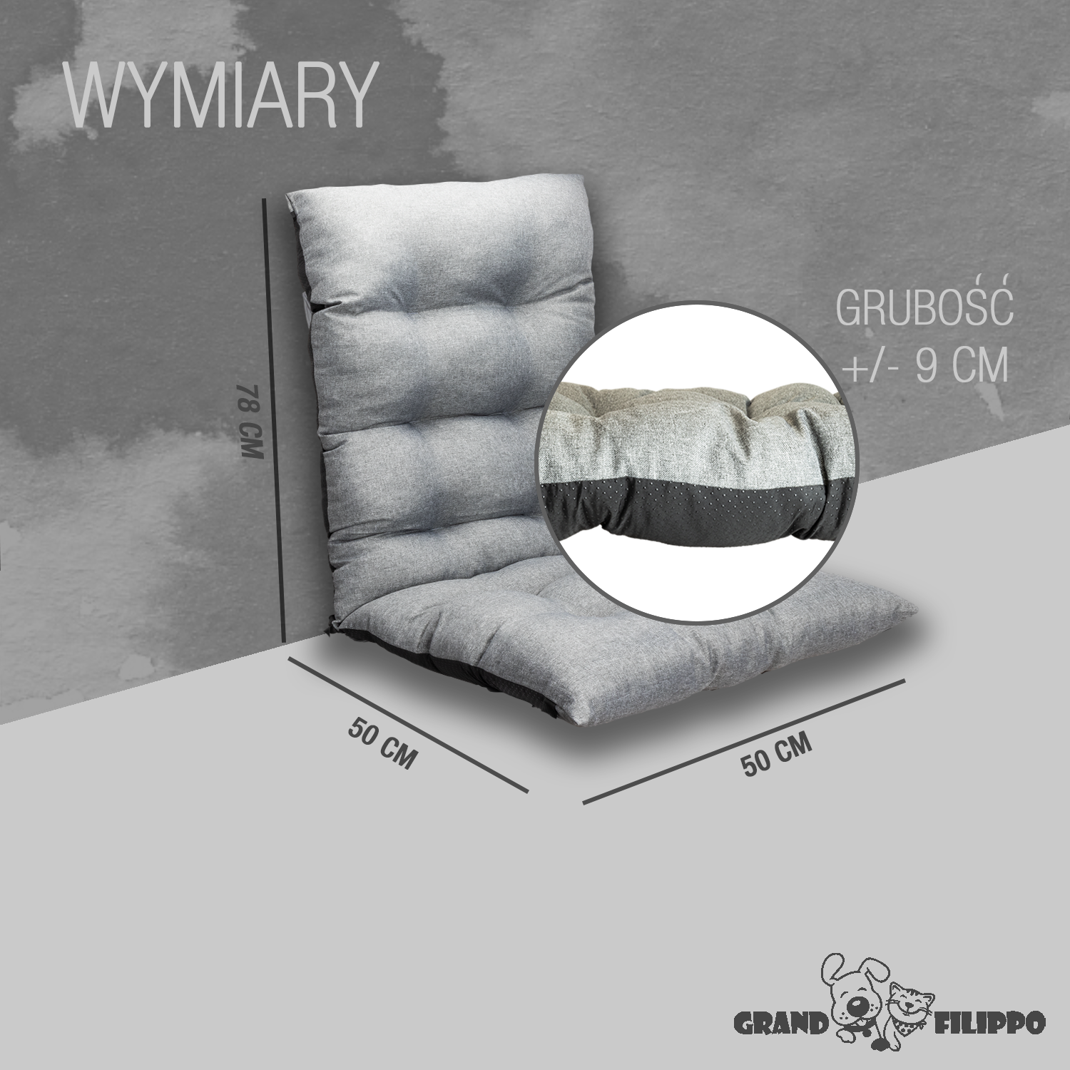 - 50x50x78 cm wymiar całkowity poduszki