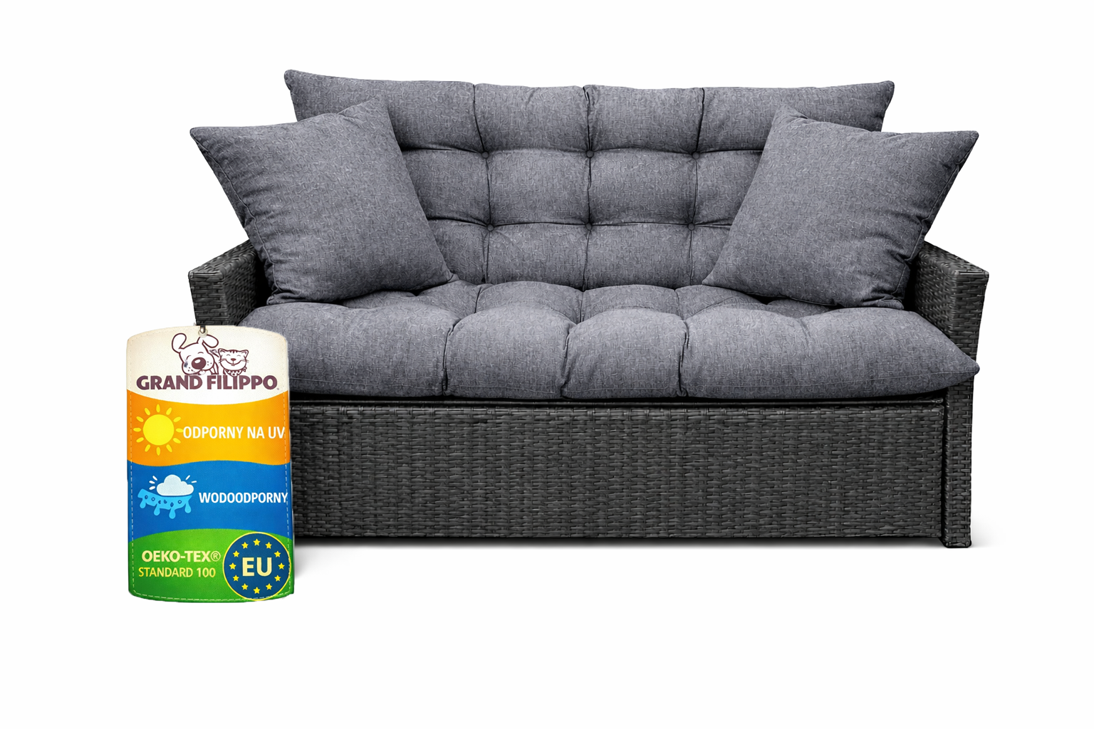 Poduszka ogrodowa wodoodporna 160x50x60 na huśtawkę, ławkę, rattan szary