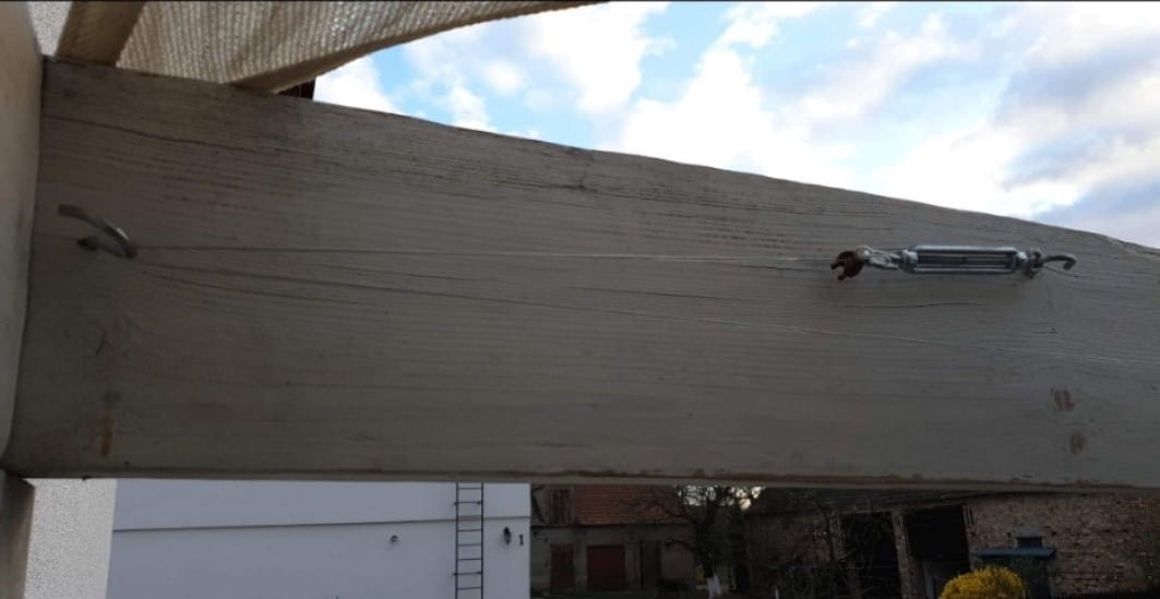 System ten polega na nabitych oczkach (kaletniczych) po których żagiel przesuwa się na linkach stalowych przymocowanych do stelażu i zaciągniętych śrubą rzymską.