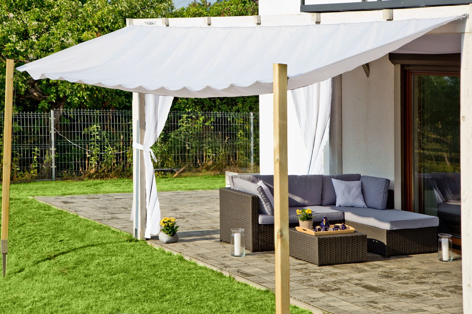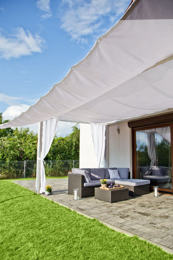 Żagiel przeciwsłoneczny doskonale sprawdzi się w ogrodzie dając cień w miejscu gdzie tego najbardziej potrzebujesz. Dzięki możliwości przemyślanemu systemowi możemy rozwinąć i zwinąć żagiel w ciągu kilkunastu sekund