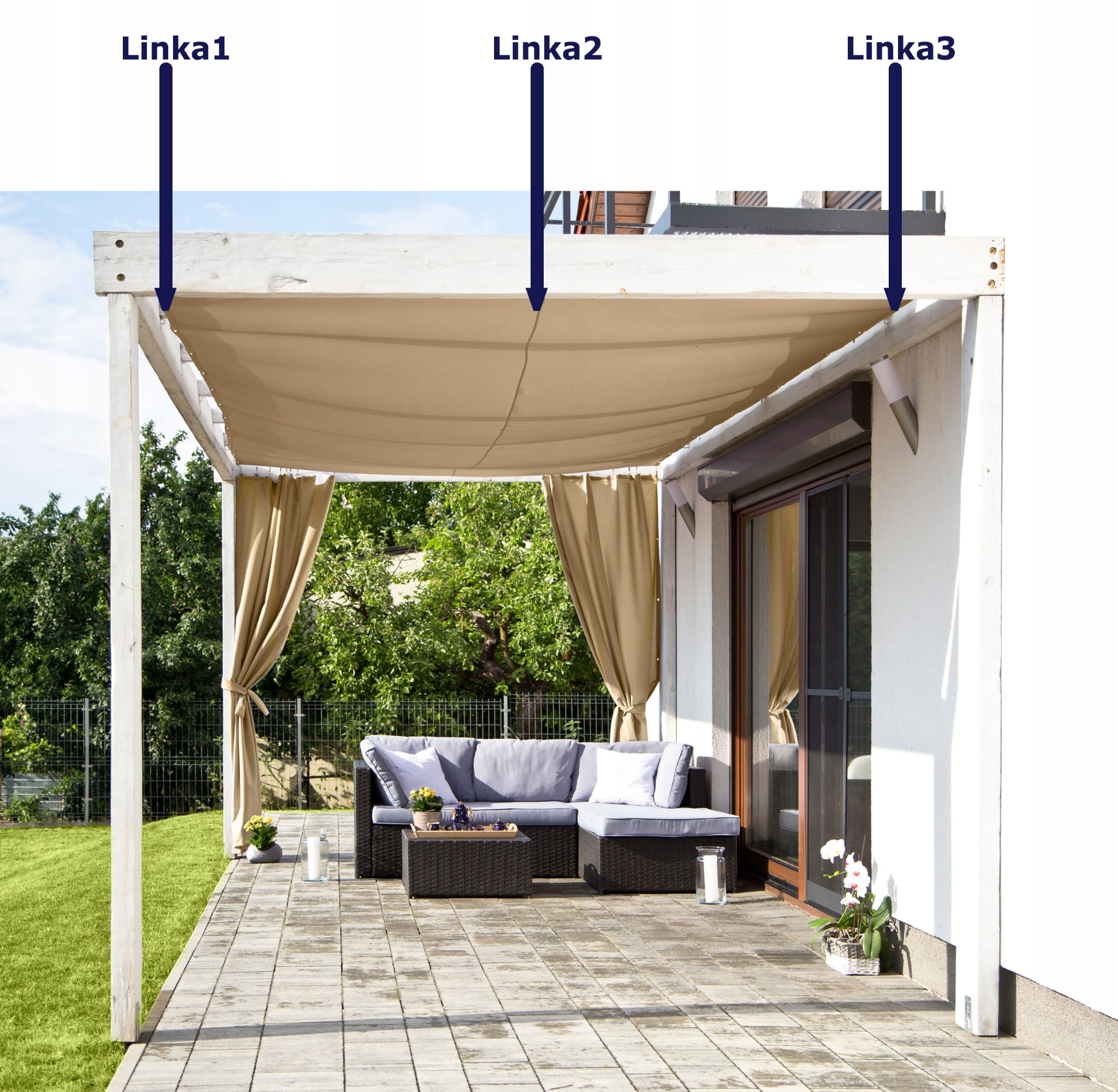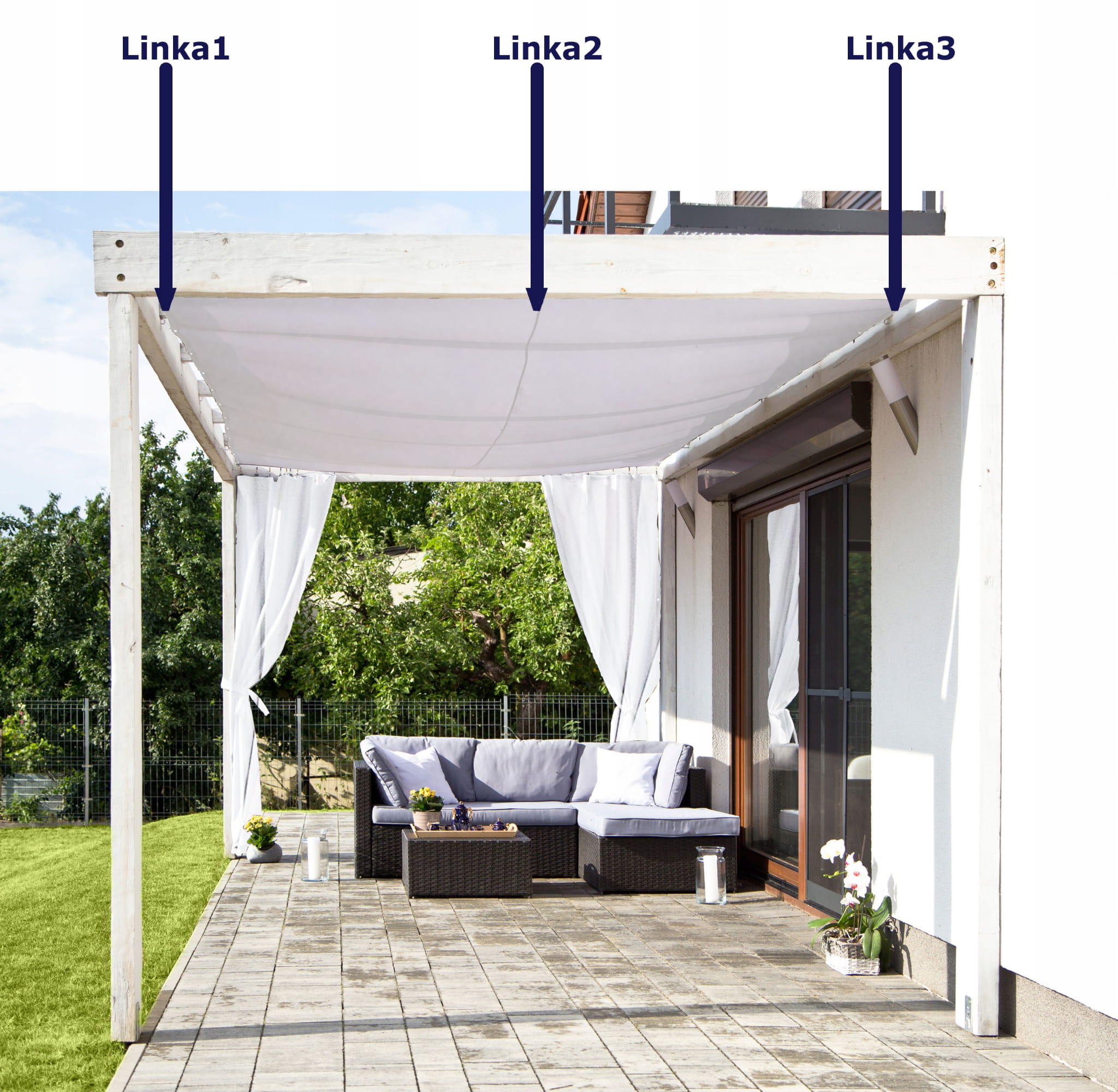 Żagiel ogrodowy przeciwsłoneczny rozsuwany na 3 linkach