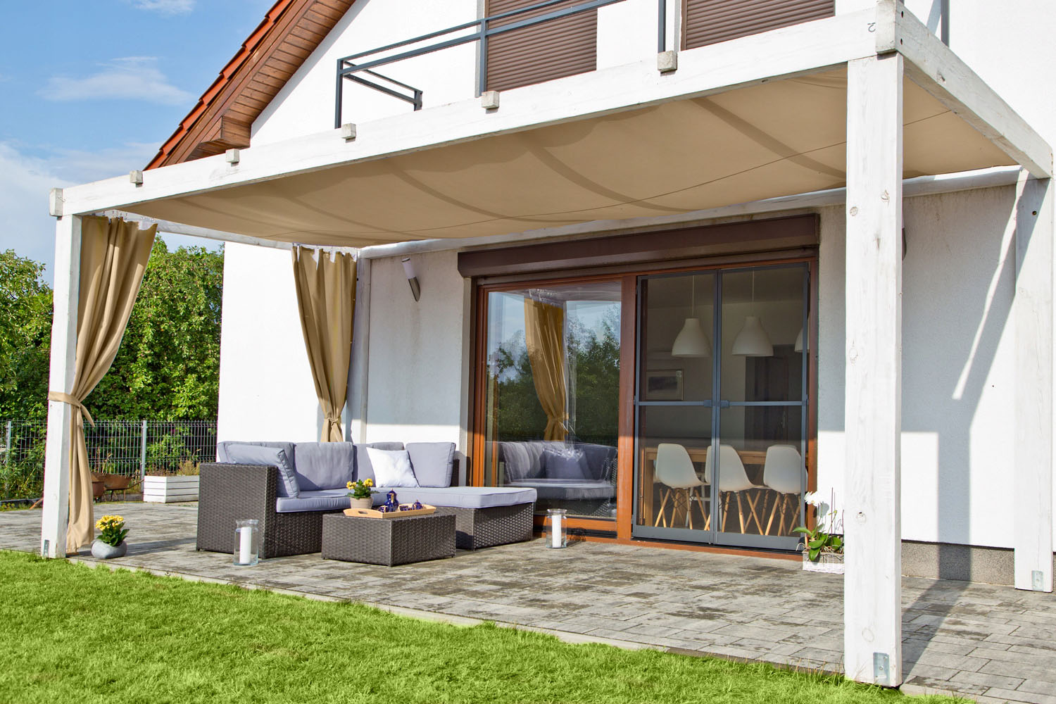 - stanowi osłonę przed palącym letnim słońcem i szkodliwymi promieniami słonecznymi