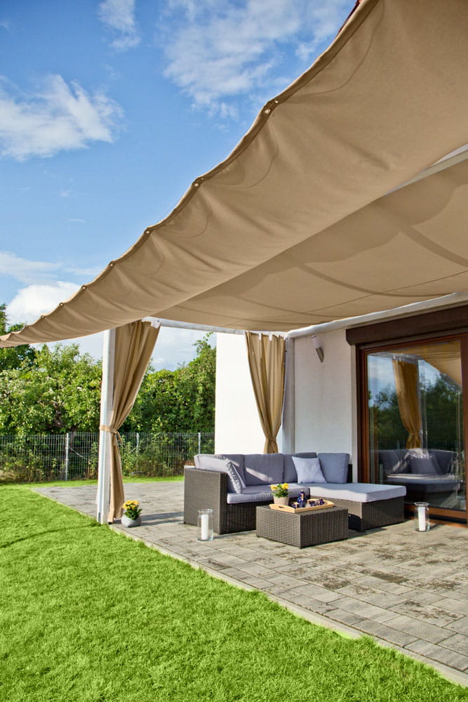 Żagiel przeciwsłoneczny doskonale sprawdzi się w ogrodzie dając cień w miejscu gdzie tego najbardziej potrzebujesz. Dzięki możliwości przemyślanemu systemowi możemy rozwinąć i zwinąć żagiel w ciągu kilkunastu sekund
