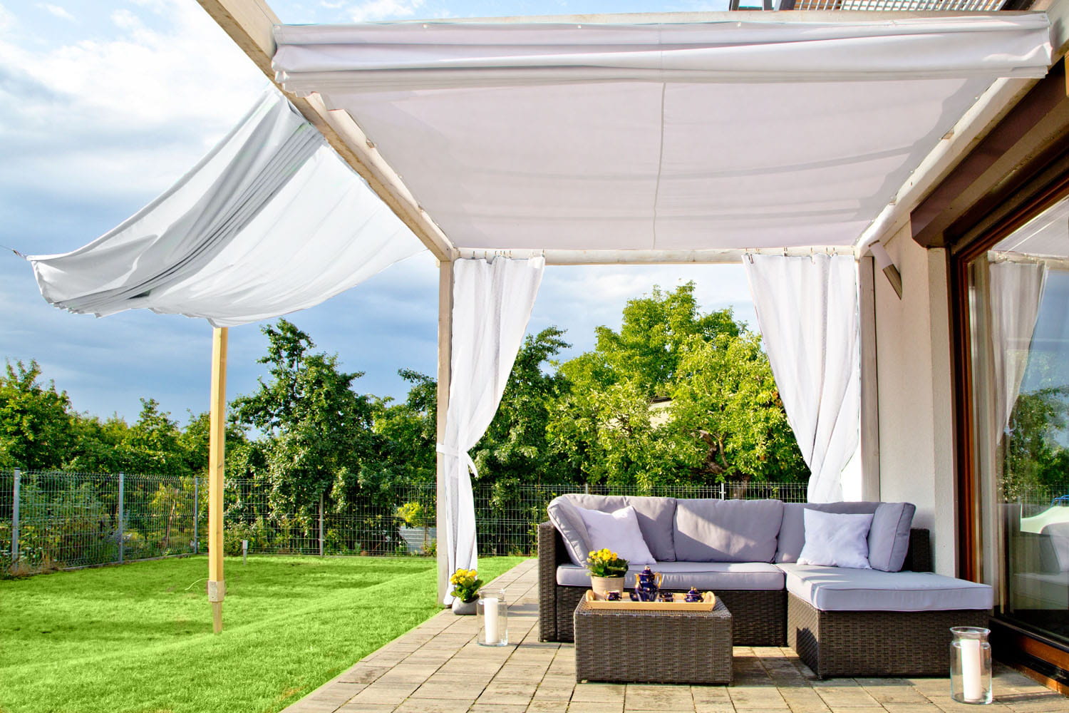 Żagiel przeciwsłoneczny doskonale sprawdzi się w ogrodzie dając cień w miejscu gdzie tego najbardziej potrzebujesz. Dzięki możliwości przemyślanemu systemowi możemy rozwinąć i zwinąć żagiel w ciągu kilkunastu sekund