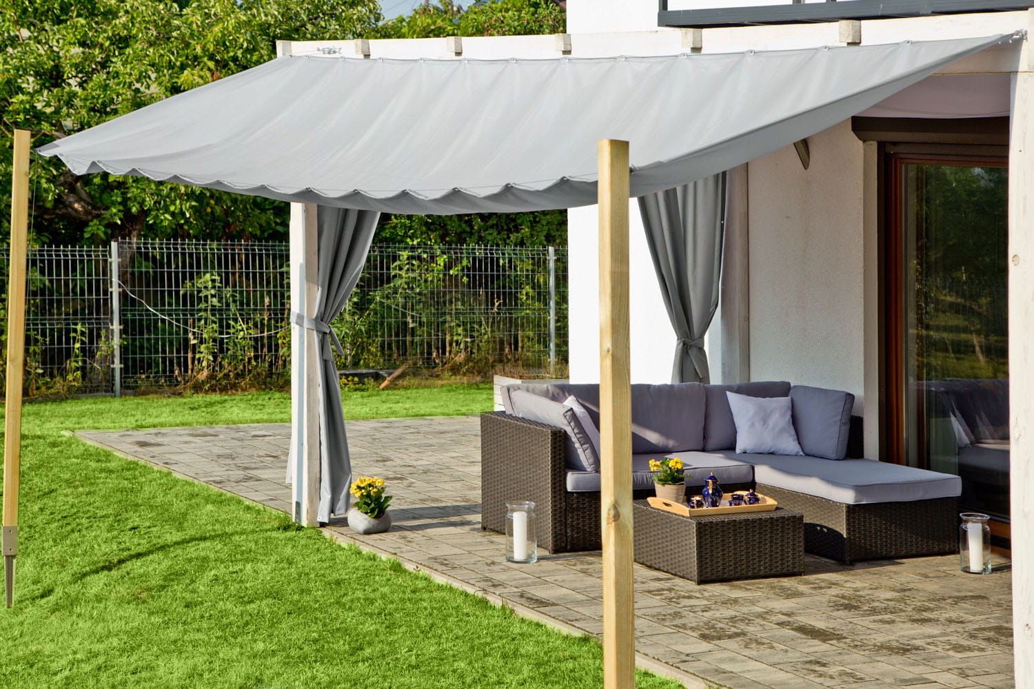 Żagiel ogrodowy rozsuwany 6m x 3m szary